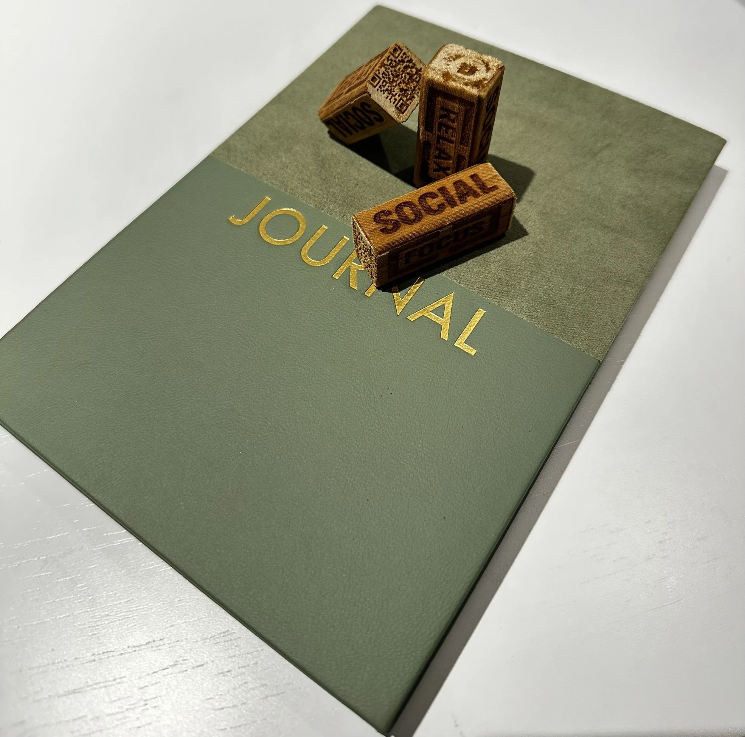 Each block has 4 cue words, “Focus”, “Create”, “Relax”, and “Social”. This block is meant to add an interactive cue for journaling, bringing your writing to the real world.